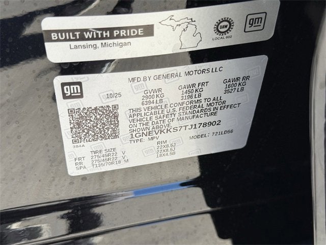 AWD, 2nd Row Buckets / Captain Chairs, 3rd Row Seat, Alloy wheels, Backup Camera, Bluetooth® / Handsfree, Heated and Cooled Seats, Keyless Entry, Leather, Power Lift Gate, Preferred Equipment Group 2LZ, Remote Start, Steering Wheel Controls, Sunroof / Moonroof, USB / AUX ports, Wheels: 22 High-Gloss Black Aluminum.