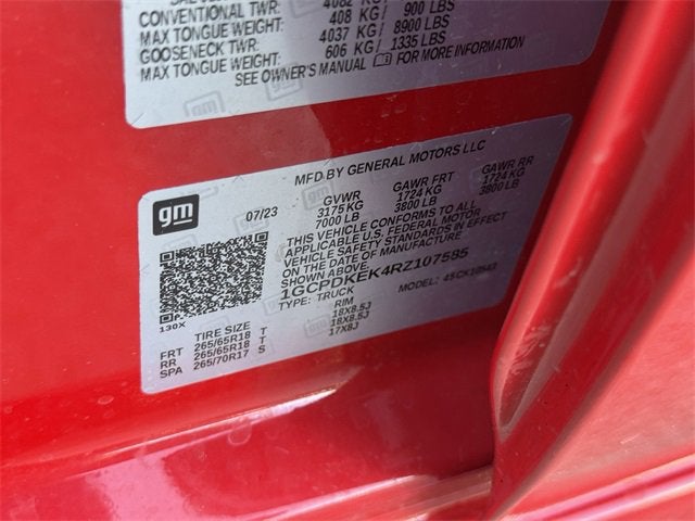 8-Speed Automatic, 4WD, Black Cloth, 10-Way Power Driver Seat w/Lumbar, 12.3 Multicolor Reconfigurable Digital Display, 120-Volt Interior Power Outlet, Alloy wheels, Auto-Locking Rear Differential, Backup Camera, Bluetooth® / Handsfree, Bluetooth® For Phone, Chrome Mirror Caps, Clean AutoCheck, Color-Keyed Carpeting Floor Covering, Convenience Package, Deep-Tinted Glass, Dual Rear USB Ports (Charge Only), Dual-Zone Automatic Climate Control, Electrical Steering Column Lock, Electronic Cruise Control, EZ Lift Power Lock & Release Tailgate, Front Frame-Mounted Black Recovery Hooks, Front Rubberized Vinyl Floor Mats, HD Rear Vision Camera, Heated Driver & Front Outboard Passenger Seats, Heated Power-Adjustable Outside Mirrors, Heated Seats, Heated Steering Wheel, Hitch Guidance, Inside Rear-View Mirror w/Tilt, Keyless Entry, Keyless Open & Start, LED Cargo Area Lighting, OnStar & Chevrolet Connected Services Capable, Power Front Windows w/Driver Express Up/Down, Power Front Windows w/Passenger Express Down, Power Rear Windows w/Express Down, Preferred Equipment Group 1LT, Preferred Equipment Group 2FL, Rear 60/40 Folding Bench Seat (Folds Up), Rear Rubberized-Vinyl Floor Mats, Remote Start, SiriusXM w/360L, Standard Suspension Package, Standard Tailgate, Steering Wheel Audio Controls, Steering Wheel Controls, Texas Edition, Trailering Package, USB / AUX ports, Wheels: 18 x 8.5 Bright Silver Painted Aluminum, Wrapped Steering Wheel.
